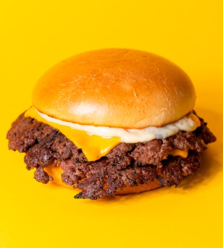 Dois hambúrgueres de carne 140g, queijo prato e maionese da casa no pão brioche, o recheio do nosso burger de carne, só que em dobro