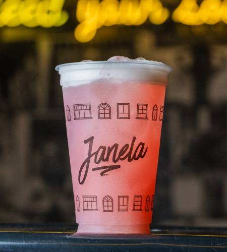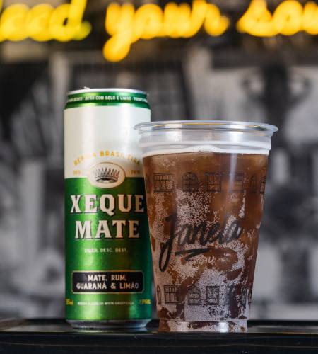 Cachaça de jambu, xarope de tangerina, suco de limão e refrigerante de gengibre