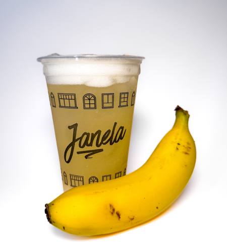 Licor de banana Niña, xarope de caramelo, suco de limão e refrigerante de gengibre